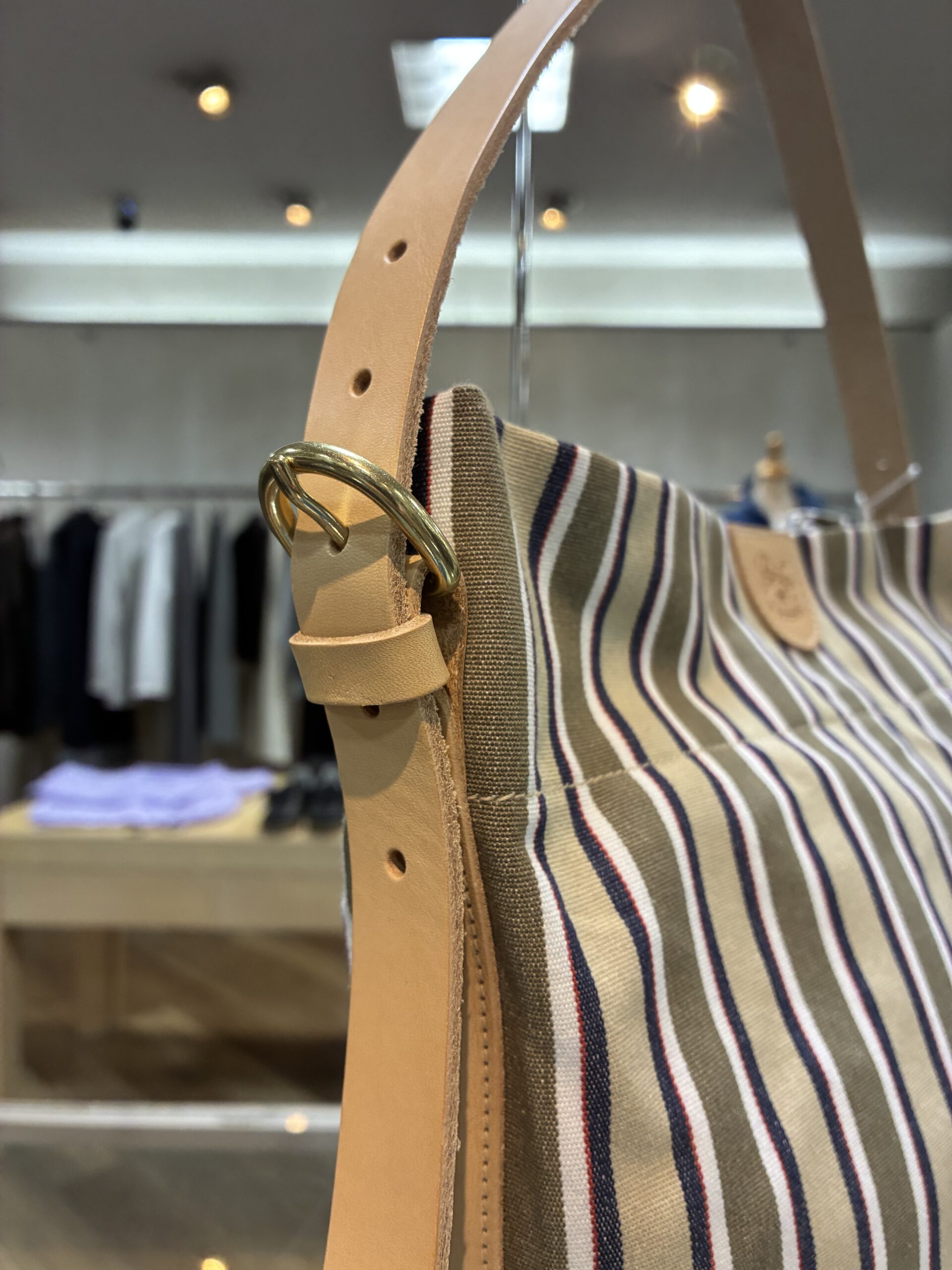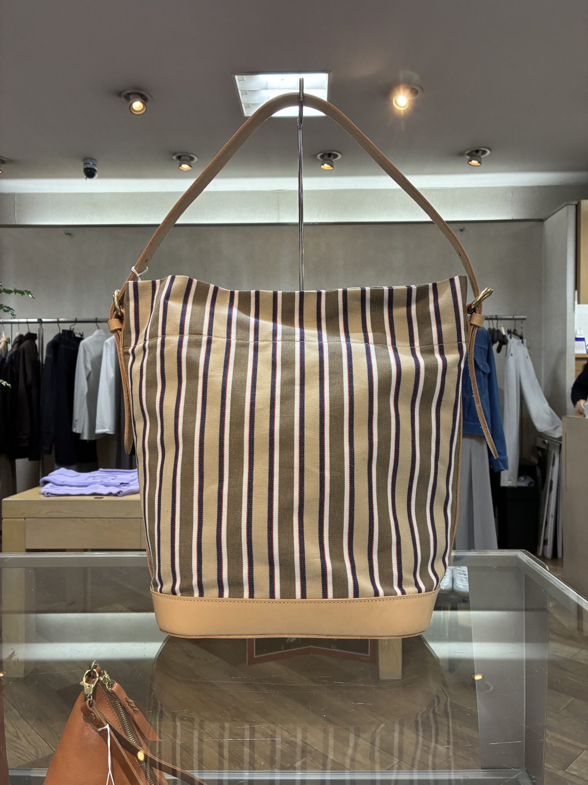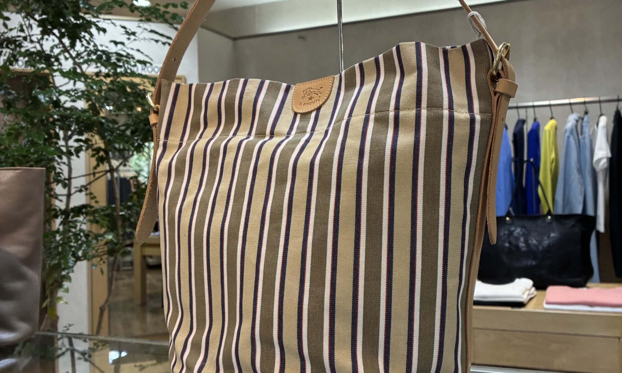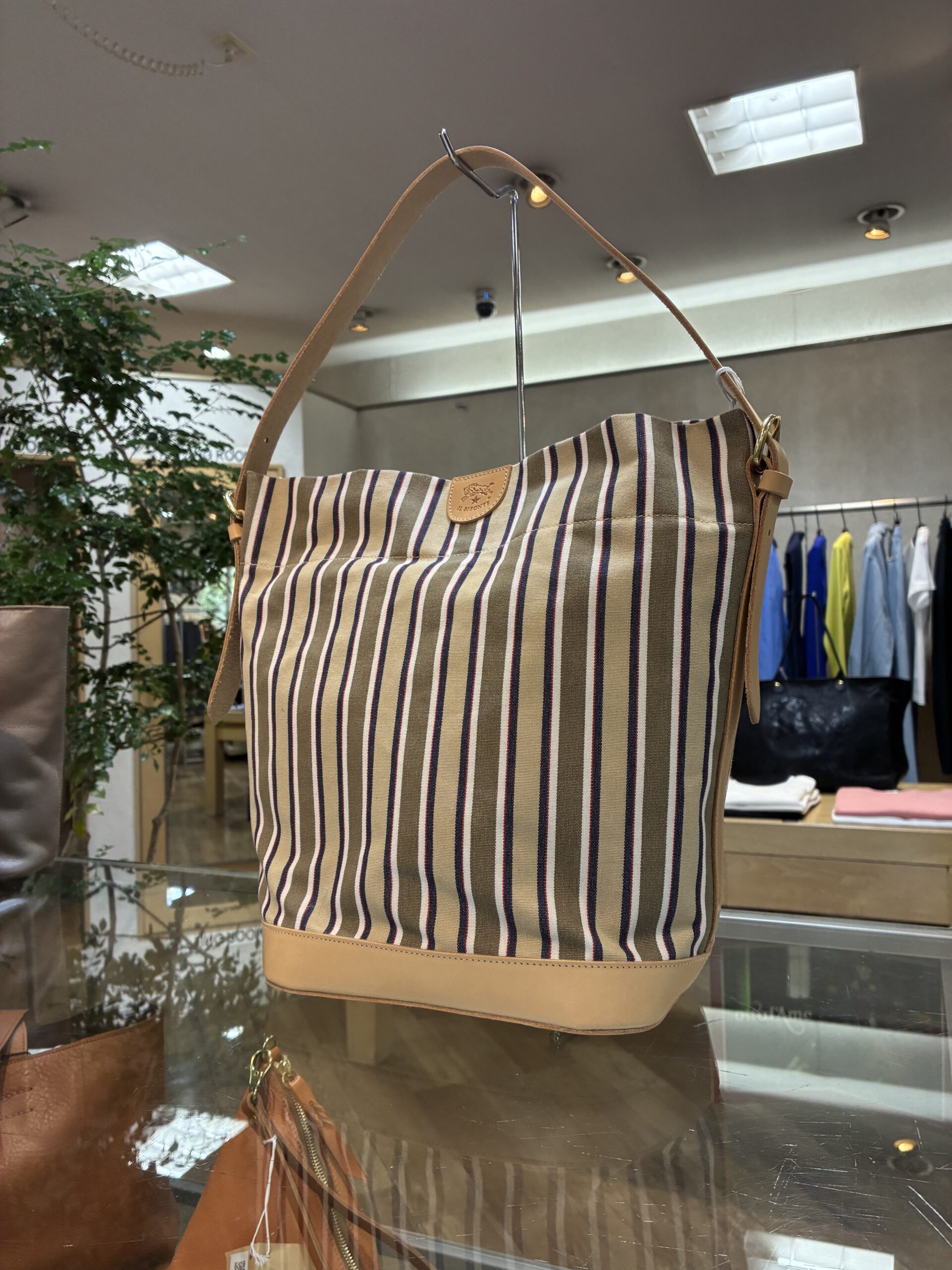 ベージュ系イルビゾンテストライプのキャンバスは、存在感がありながらも上品。
