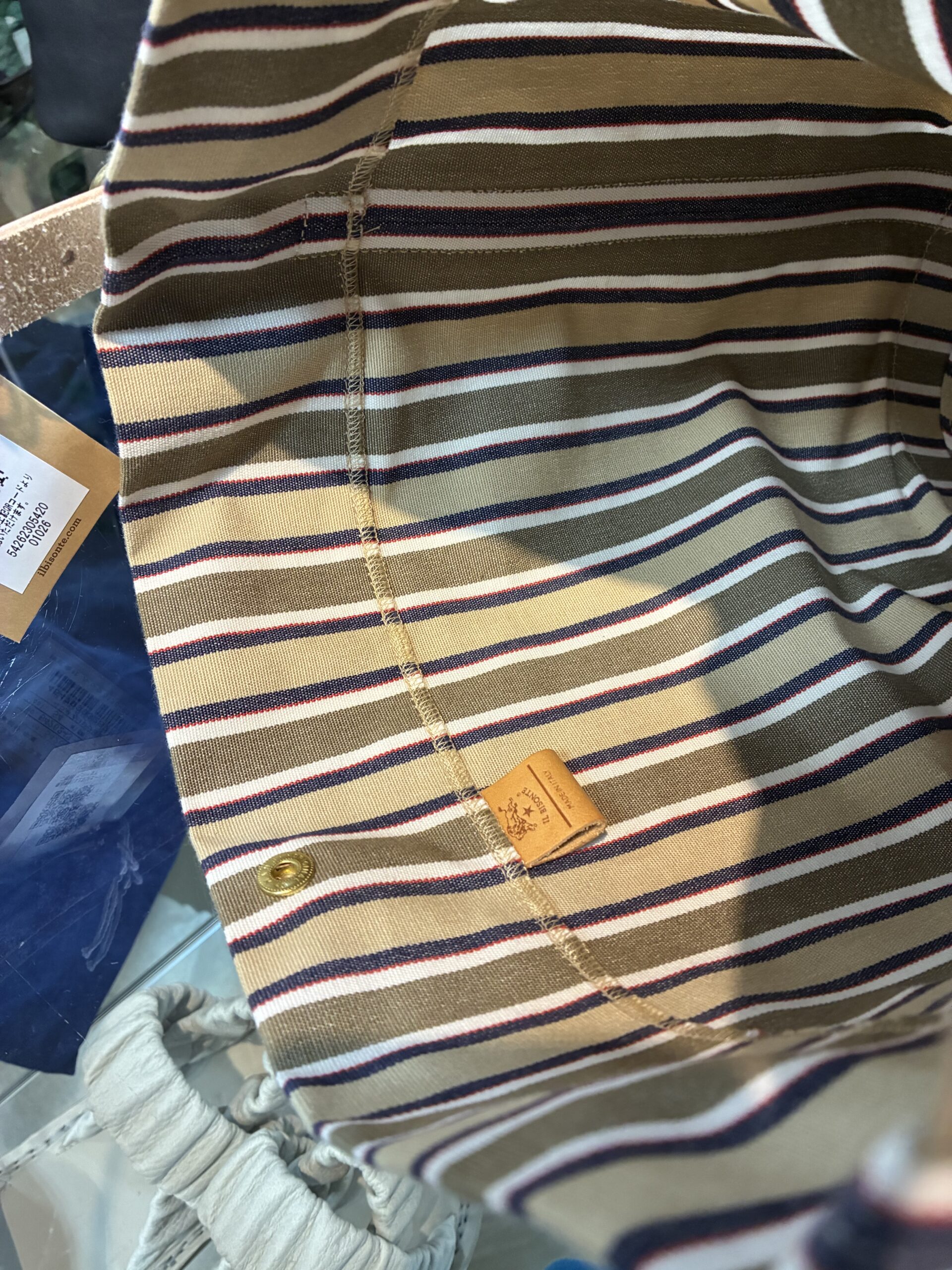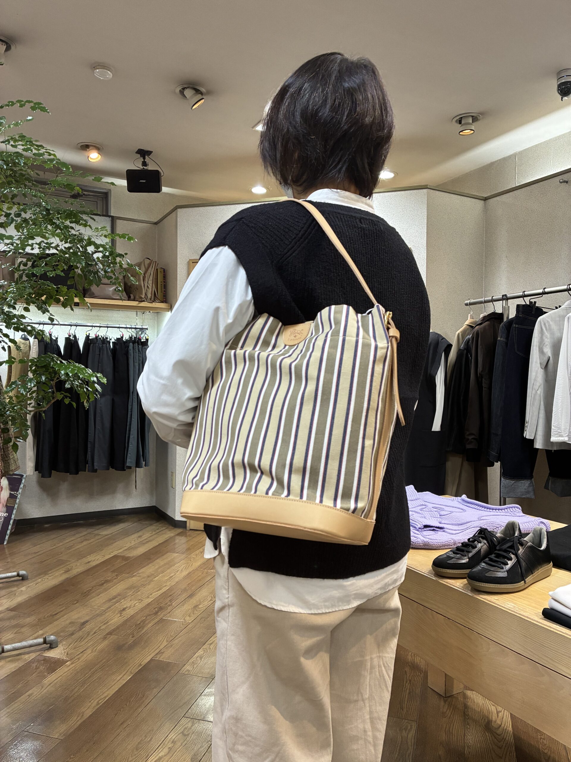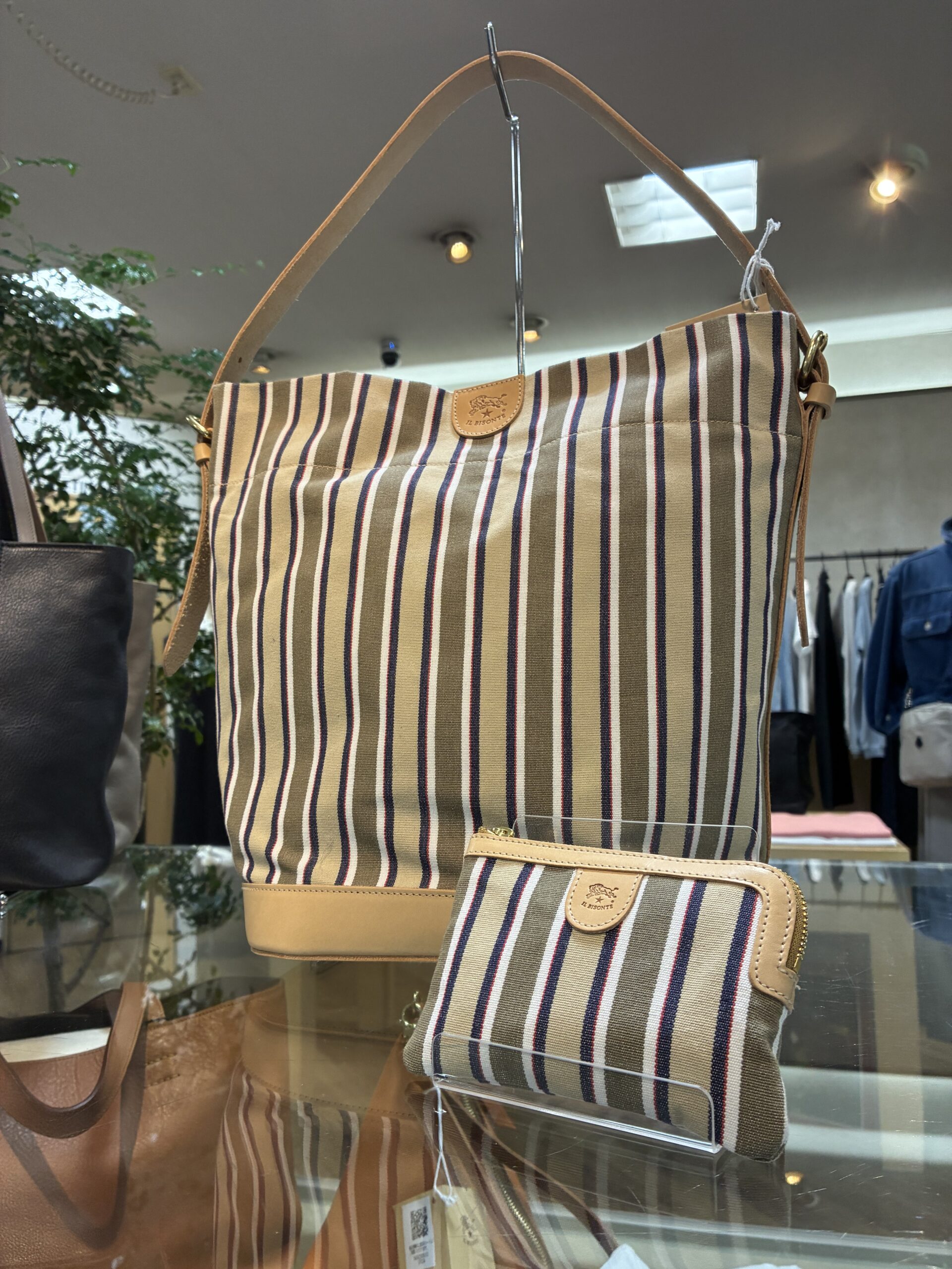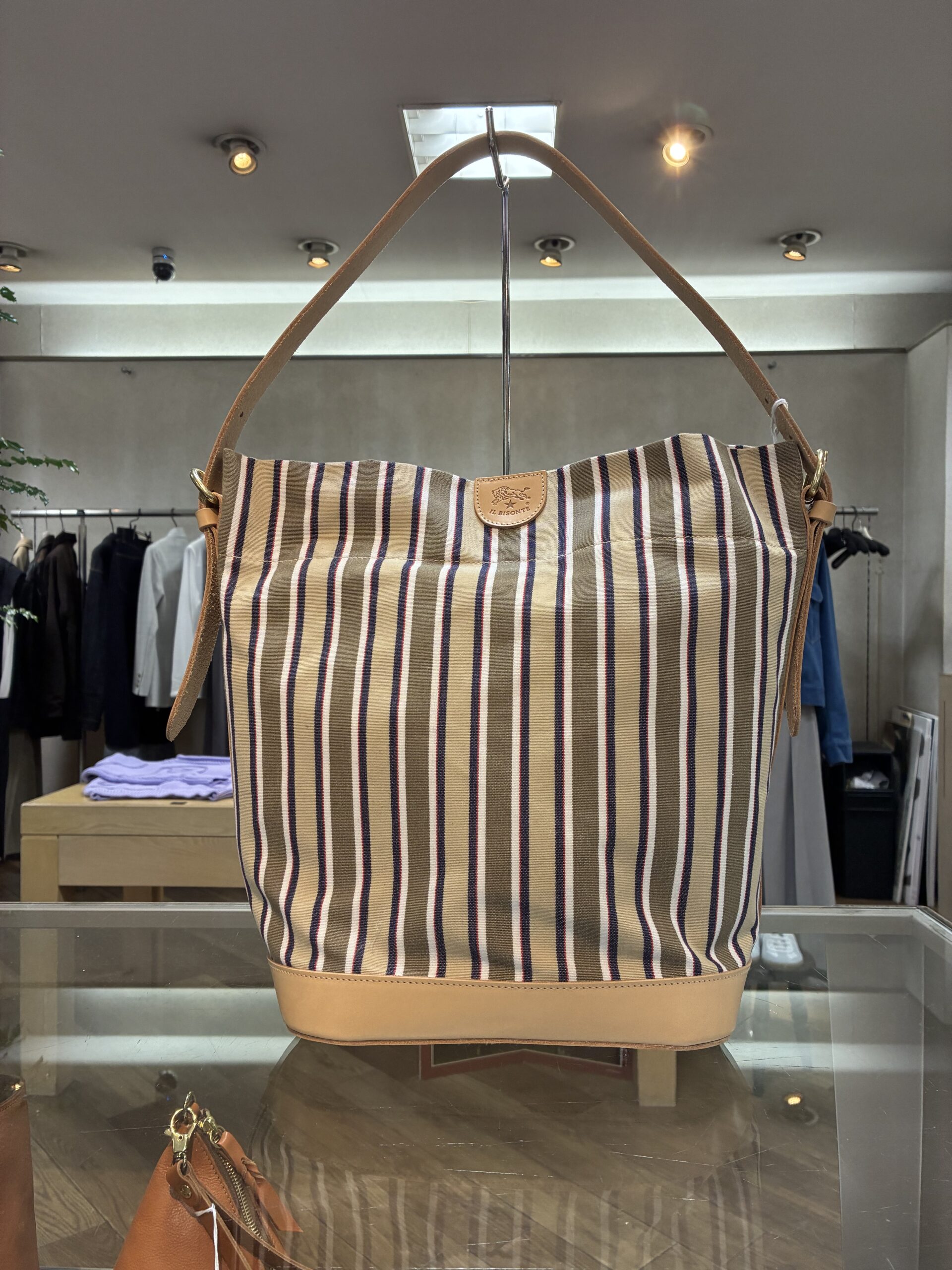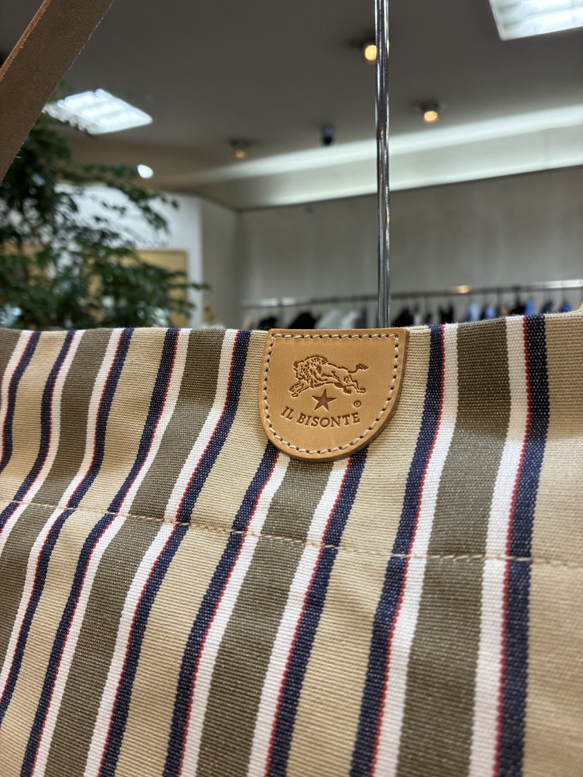 ベージュ系イルビゾンテストライプのキャンバスは、存在感がありながらも上品。