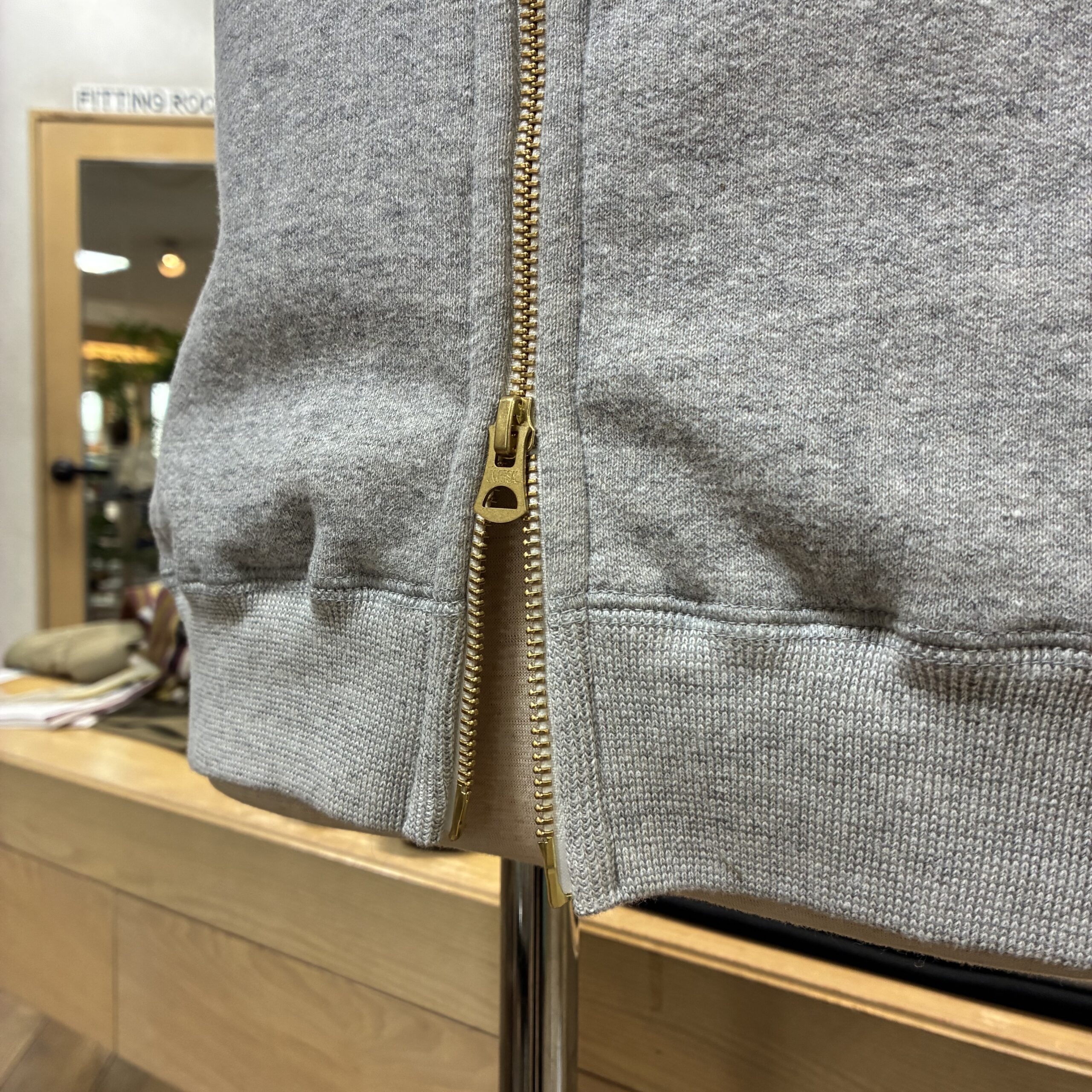 すべての裏起毛素材は旧式のシンカー織機で編み立てられており、独特の霜降りが特徴です。
